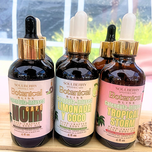 Botanical Bliss | CALENDULA-INFUSED | Luxe MINI Body Oils | with Coconut, Golden Jojoba, Pomegranate & Buriti Oils - 1oz