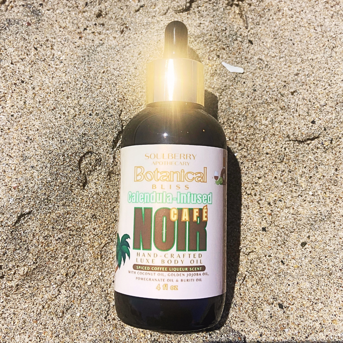 CAFÉ NOIR | BOTANICAL BLISS Luxe Body Oil CALENDULA-INFUSED | with Coconut Oil, Golden Jojoba Oil, Pomegranate OIl & Buriti Oil