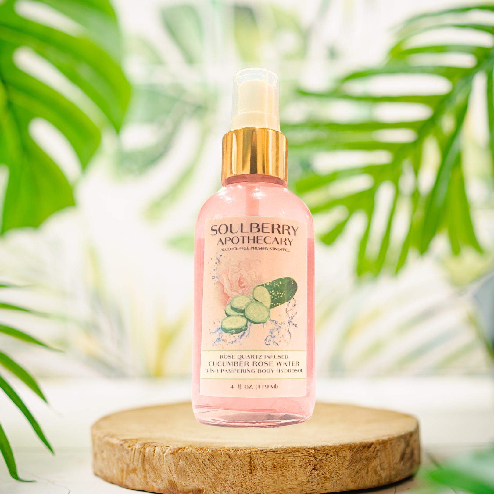 Cucumber Rose Water | Rose Quartz Infused - 3-in-1 Pampering Body Hydrosol | Multi-Use